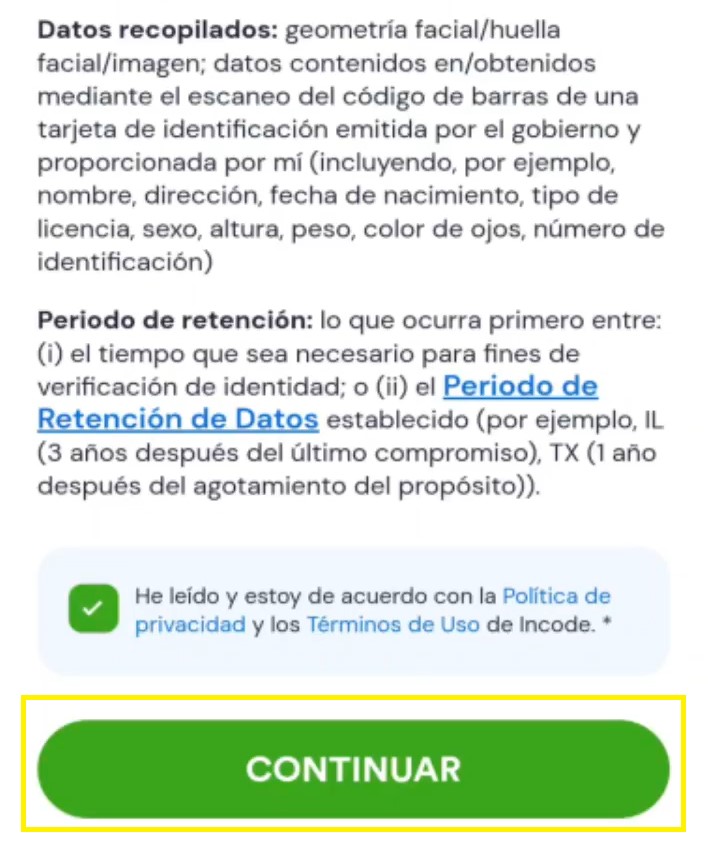 - Lee y acepta los términos y condiciones para el manejo de tu información y haz clic en “Continuar”.